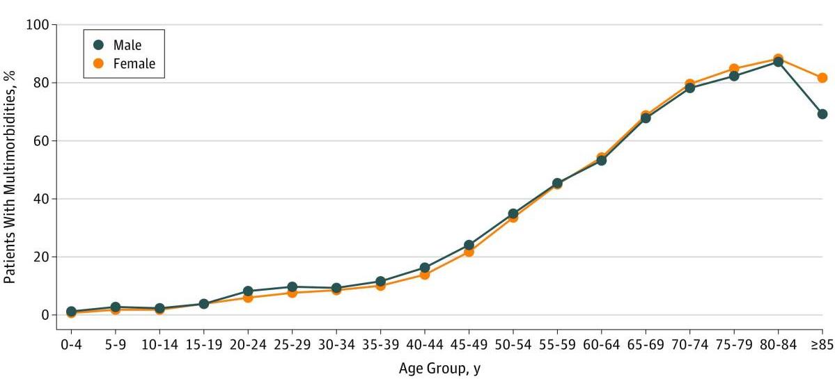 Figure 3: Epidemiologic Characteristics of Multimorbidity and Sociodemographic Factors Associated With Multimorbidity in a Rapidly Aging Asian Country, JAMA 2019. Source: https://pmc.ncbi.nlm.nih.gov/articles/PMC6902794/